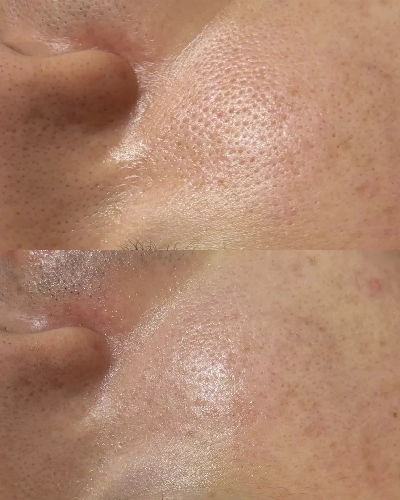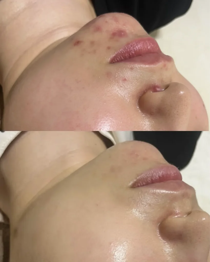 施術直後はむくみ改善・トーンアップ・毛穴の引き締め効果があります。つやつや・ふっくらとした状態になります。